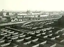 L'industrialisation s'accompagna d'une paupérisation d'une partie de la population. En 1889, en réponse au mouvement social dénommé settlement movement, les réformatrices sociales et militantes Jane Addams et Ellen Gates Starr[92] ouvrirent un centre en septembre 1889 sous le nom de la « Hull House » qui servit de centre d'accueil pour les pauvres[93] dans les bas quartiers de Chicago. La ville devint la deuxième des États-Unis et un grand centre manufacturier, où les enfants des fermiers pauvres, les ouvriers agricoles et les nouveaux arrivants vinrent trouver du travail. Entre 1880 et 1890 la population doubla. L'urbanisation ne suivit pas l'explosion démographique, d'où l'émergence de nombreux bidonvilles et taudis où sévirent le manque d'hygiène, les maladies, la malnutrition et la surpopulation[94]. Jane Addams obtint le prix Nobel de la paix en 1931 pour son action sociale[95].