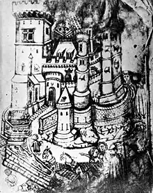 Fortifications de Lectoure, XVIIe siècle, plan Mérian (le Nord est en bas)