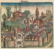 Le 16 août 1328 Rainaldo, dit le Passerino, le dernier des Bonacolsi, est tué lors d'une révolte populaire soutenue militairement par Cangrande della Scala, seigneur de Vérone[10]. Les Corradi-Gonzaga, nobles de la campagne qui habitaient la ville en 1186, conquièrent le pouvoir en le soustrayant aux ambitions des Della Scala.