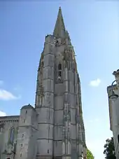 En mars 1568, la paix de Longjumeau suspend brièvement les hostilités. Cette même année, La Rochelle adhère au parti Protestant sous la houlette du prince de Condé qui va réorganiser la lutte protestante sur terre et sur mer. À l'automne 1568, les protestants de Marennes se rallient aux armées du prince de Condé qui s'est constitué un véritable État protestant autour de La Rochelle[70]. Les Rochelais y fixent alors une garnison protestante et les Marennais participent aux opérations militaires et navales du prince de Condé dans la mer des pertuis. A Marennes, les catholiques se retranchent alors dans l'église qui est transformée en citadelle. À la fin du conflit, l'église prieurale a subi de si graves dommages que la destruction de sa nef sera ordonnée en 1602[63]. Seul le clocher-porche, haut de 85 mètres, témoigne de l'importance de l'édifice initial et de sa solidité.