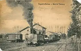 Le chemin de fer arriva à Nogent-le-Rotrou en 1854 abve l'ouverture, le 16 février, du tronçon Chartres-Nogent-le-Rotrou ; le 1er juin 1854, Nogent-le-Rotrou fut reliée au Mans.