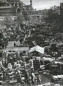 Grâce à sa position privilégiée sur les grands itinéraires commerciaux, c'est l'activité marchande qui donne son essor à la ville, l'ample courbe du fleuve constituant une série de commodes ports naturels. La rive droite devient le débouché des grandes routes commerciales : le blé entre par la rue Saint-Honoré, les draps du Nord par la rue Saint-Denis et le poisson de la mer du Nord et de la Manche par la rue des Poissonniers. L'importance de son marché, en liaison avec la foire du Lendit à Saint-Denis, nécessite de la place et son établissement dans un lieu plus dégagé que l'île de la cité : Louis VI l'installe vers 1137 au lieu-dit Les Champeaux, les petits champs ; les Halles de Paris y restent durant plus de huit siècles. En 1121, il accorde le privilège des marchands d'eau. Celui-ci est confirmé et étendu par son fils Louis VII : les marchands parisiens reçoivent le monopole de la navigation fluviale entre Mantes et Paris[45],[46].