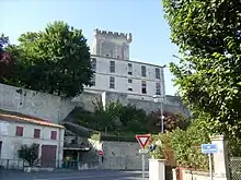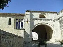 Les sires de Pons[N 9],[25],[26],[27], aussi appelés princes de Pons (le titre de prince décorait un certain nombre de seigneurs aquitains), avaient fortifié l'ancien castrum romain, en y élevant notamment une tour et en y construisant un rempart qui ceinturait le site primitif de la ville[23] et fait établir des ponts en bois sur la Seugne afin de réaliser une route en direction d'Archiac, alors siège d'une sénéchaussée et d'un archiprêtré duquel dépendait la paroisse de Pons[28].