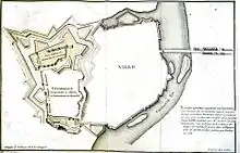 Si son statut de capitale de Saintonge reste assuré, Saintes est avant tout un centre religieux, comme en témoignent le nombre important de lieux de culte — à une quinzaine de sites principaux s'ajoutent de nombreuses chapelles annexes — et la présence, autour de la cathédrale, d'un quartier canonial[26]. De nombreux ordres religieux s'y sont également installés pour revitaliser l'Église selon les préceptes du concile de Trente[27]. Saintes reste une petite ville, dont la population, dans les années 1750, est estimée entre 7 000 et 8 000 habitants[28]. Son rôle judiciaire prend néanmoins de l'importance à partir du XVIIe siècle. L'époque est marquée par la contrainte, pour la population, d'impôts très importants, qui affaiblit du même coup l'économie, de même que le départ des protestants, après la révocation de l'Édit de Nantes le 15 octobre 1685. La vie intellectuelle est assez limitée, les imprimeurs rares, et la ville ne possède aucune bibliothèque publique[29]. Quant à la topographie urbaine, elle reste essentiellement moyenâgeuse.