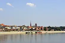 Pendant la Seconde Guerre mondiale, les Allemands utilisent la chaîne de remparts entourant la ville pour définir les limites d'un camp de prisonniers de guerre, connu sous le nom de Stalag XX-A. La ville échappe à une destruction importante pendant la guerre. En 1945, la ville est prise par l'Armée rouge soviétique. Comme cela était le cas avant la guerre, la ville retourne à la Pologne. La population allemand présente alors est expulsée par la force, dans un premier temps vers l'Allemagne de l'Est, entre 1945 et 1947.