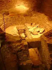 Peu de traces ou de monuments romains sont parvenus jusqu'à nous. Un tronçon de rempart est visible place Saint-Jacques près du palais Niel, et une autre partie du rempart et le début des fondations d'une tour sont également visibles dans les sous-sols du magasin Uniqlo, au 3 Rue du Poids de l'Huile. Les restes de l'amphithéâtre de Purpan sont aussi des témoins de cette époque. Cela s'explique en grande partie par le matériau principal des constructions romaines qu'est la brique. Contrairement à d'autres villes romaines construites en pierre de taille, Toulouse a été obligée d'utiliser l'argile de la vallée pour fabriquer des briques pour ses constructions. Or la brique est un matériau beaucoup plus facilement réutilisable que la pierre. Les nombreuses reconstructions successives ont été faites à partir et sur les anciens bâtiments romains[24]. Aujourd'hui, la base des édifices romains et des aménagements urbains sont enfouis sous 3 à 5 m du pavé toulousain. Entre les années 1990 et 2007[25], la construction du métro de Toulouse a permis de faire avancer les connaissances sur l'antique Toulouse[26].