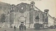 C'est dans la seconde moitié du XIXe siècle que la morphologie de Tourcoing va radicalement changer. En effet, cette période, inaugurée par la mise en service de la ligne ferroviaire entre Tourcoing, Roubaix et Lille (1846)[25], voit le percement de nouvelles rues, du Boulevard Gambetta reliant la ville à Roubaix (dont le tracé a été décidé en 1872[26], mais qui ne sera réalisé qu'en 1880[27]), la reconstruction de l'église Saint-Christophe de 1856 à 1898 (chantier en plusieurs phases), l'édification du nouvel hôtel de ville en 1885 mais aussi la construction en 1878 de nouvelles halles en lieu et place du château du Bailly, détruit un an auparavant. Ces halles métalliques, dont la construction avait été décidée en 1866, a été bâtie sur les plans de l'architecte Louis Le Blan[28], ce dernier s'est inspiré des halles Baltard. Cependant, elles ne furent que très peu utilisées et furent reconverties en Hippodrome, avant d'être démolies en 1935. Leur structure métallique était soutenue par des piliers en briques polychromes et elles comprenaient en guise de décoration intérieure des colonnettes de fonte imitant les ordres classiques[27]. Les premiers tramways tourquennois entrent en service en 1877[27]. Enfin, en 1909 est ouvert le Grand Boulevard[29], qui relie les trois villes de Tourcoing, Roubaix et Lille. Il comprend dès son ouverture une ligne de tramway, nommé le "Mongy", du nom de son concepteur le lillois Alfred Mongy.