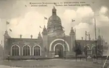 En 1906, a lieu à Tourcoing, l'exposition internationale des industries textiles ; le président de la République Armand Fallières vient la visiter le [34] (élu la même année, il s'agit de sa première visite officielle). Cette exposition, organisée près du canal dans le quartier du Flocon, connut un succès sans précédent pour Tourcoing puisqu'elle accueillit 800 exposants et attira plus de 700 000 visiteurs[35]. Sont alors construits le Palais des industries textiles et des pavillons éphémères élaborés par l'architecte Maxime Sevin qui s'est librement inspiré de ceux bâtis lors de l'Exposition Universelle de Paris de 1900[27]. Le Palais des industries textiles était l'une des plus vastes constructions de l'exposition : il comportait un grand hall dédié aux produits textiles et au fonctionnement des métiers, mais également une salle d'honneur aux décorations de stuc doré rappelant Versailles ainsi qu'une salle d'exposition d'objets d'art et de produits manufacturés décoratifs. La façade de ce Palais était exubérante, une architecture fastueuse évoquant le style Louis XVI[36].