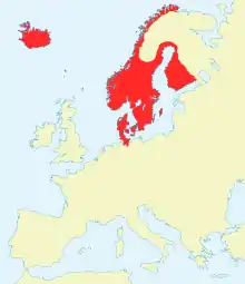 Après la défaite de la France, les Danois paient le prix de leur alliance avec Napoléon Ier et, en 1814, ils doivent céder la Norvège à la Suède. L'Islande, unie à la Norvège depuis 1262, reste sous domination danoise avec le Groenland et les Îles Féroé[A 40].