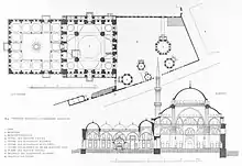 La mosquée Bayezid II à Istanbul a été construite entre 1500 et 1505 sous la direction de l'architecte Ya'qub ou Yakubshah (bien que Hayrettin soit également mentionné dans certains documents)[6]. Il faisait également partie d'un complexe plus vaste, qui comprenait une madrasa (servant aujourd'hui de musée d'art calligraphique turc), un hammam monumental (le Bayezid II Hamam), des hospices, un imaret, un caravansérail et un cimetière autour du mausolée du sultan. La mosquée elle-même, le plus grand bâtiment, se compose de nouveau d'une cour menant à la salle de prière carrée. Cependant, la salle de prière utilise désormais deux demi-dômes alignés avec le dôme central principal, tandis que les allées latérales sont chacune couvertes par quatre dômes plus petits. Par rapport aux mosquées précédentes, cela se traduit par un effet de « cascade de dômes » beaucoup plus sophistiqué pour le profil extérieur du bâtiment, reflétant probablement les influences de la basilique Sainte-Sophie et de la mosquée Fatih d'origine (maintenant disparue). La mosquée est l'aboutissement de cette période d'exploration architecturale sous Bayezid II et la dernière étape vers le style ottoman classique. L'arrangement délibéré d'éléments architecturaux ottomans établis dans une conception fortement symétrique est un aspect qui dénote cette évolution.
