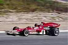 Sans enjeu, le Grand Prix d'Italie[168] n'en rentre pas moins dans l'histoire. Au terme d'un longue course d'aspiration en peloton, Peter Gethin, désormais chez BRM après son licenciement de chez Mclaren (pour manque de résultats) s'impose avec un centième de seconde d'avance sur Ronnie Peterson. François Cevert[169] complète le podium à 9 centièmes, devant Mike Hailwood à 18 centièmes et Howden Ganley, cinquième à 61 centièmes de seconde : c'est l'arrivée la plus serrée de l'histoire de la Formule 1. Au Canada, Jackie Stewart renoue avec le succès tandis que François Cevert parachève la domination Tyrrell en signant à Watkins Glen, l'ultime manche de la saison, la première victoire d'un pilote français en Formule 1 depuis Maurice Trintignant en 1958. Si Jackie Stewart (qui décroche son second titre mondial) permet à Tyrrell Racing de remporter le titre constructeurs pour son premier engagement dans la discipline, la révélation de la saison est Ronnie Peterson[170] qui, sur une March[171] 711 moins performante que ses concurrentes qui termine à la deuxième place du championnat du monde grâce à ses cinq podiums.