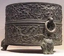 Han Wu envoie également en 128 av. J.-C. une expédition vers ce qui est maintenant la Corée du Nord, mais il abandonne deux ans plus tard[120]. Ce n'est qu'en 108 av. J.-C. qu'une autre expédition réussit à établir quatre commanderies dans cette zone, mais en 82 av. J.-C. il n'en reste plus que deux : les commanderies de Xuantu et Lelang[121]. Même si l'implantation des commanderies s'accompagne d'une violente résistance et de temps en temps, de raids venant des royaumes de Koguryo et Puyŏ, les colons chinois réussissent à établir des relations commerciales pacifiques avec les Coréens, qui vivent en étant largement indépendants par rapport aux rares colonies Han, même s'ils sont culturellement influencés par ces dernières[122].
