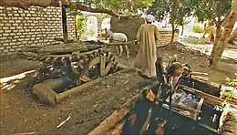 En Égypte, au début du IIIe millénaire avant J.-C., les temples dédiés aux pharaons des premières dynasties n'ont pas de réseaux d’eau ; dans l’ancienne capitale Memphis (IIe dynastie, 2 750 ans av. J.-C.), les maisons-palais de la haute bourgeoisie sont encore alimentées en eau à partir d’un puits-citerne qui recueillait l’eau de pluie ou l'eau du Nil, apportée par les serviteurs et les ânes[N 6].
