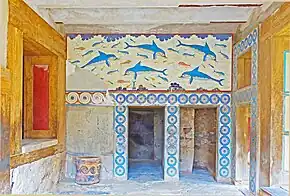 C'est au cours de la civilisation minoenne, que sont construits les palais de Phaistos, Mallia, Zakros et le palais de Minos à Cnossos, le plus significatif des palais sur le plan de l'hydraulique, et du travail des plombiers crétois. Le palais de Cnossos, celui-ci d'ailleurs était plus un complexe de locaux, qu'un palais avec ses lieux de stockage des marchandises, ses moulins à huile, ses ateliers d'artisans, son palais avec ses dépendances, des bâtiments de logements de plusieurs étages et des bâtiments publics, comme les ensembles de détente avec bains publics et bars[58]. L'ensemble comprenait 1 500 pièces. Une sorte de cité-État plus qu'un palais classique. L'ensemble de l'île comportait près de 100 000 habitants. La construction du vieux palais à Cnossos date de 2200 avant J.-C., puis après sa destruction en 1800 avant J.-C., le nouveau palais, au cours du VIIe siècle av. J.-C., fut construit plus moderne, plus vaste et comportait plusieurs étages. Le manque d'eau dans l'île, consécutif à un environnement climatique très sec, a obligé la civilisation minoenne à développer des standards d'hygiène, d'hydraulique et de plomberie, qu'aucune autre civilisation n'avait jusque là atteinte[59]. Les plombiers crétois ont élaboré et installé à partir des eaux disponibles, comme l'exploitation des eaux souterraines, ainsi que la récupération des eaux de pluie, des systèmes d'adduction, de filtration et de transportation des eaux potables, ainsi que le traitement des eaux usées et des eaux pluviales, avec un niveau technique exceptionnel pour l'époque. Les archéologues ont mis au jour lors de leurs travaux, des vestiges de réseaux de canalisations en pierre et en terre cuite - terra-cotta -, qui peuvent s'apparenter, dans une moindre mesure, aux installations hydrauliques mises au jour dans les villes de Dur-Untash, dans la province du Khouzestan iranien - 2400 à 539 avant J.-C. - et les villes de la civilisation de la Vallée de l'Indus, comme Mohenjo-Daro et Harappa - 2800 – 2600 avant J.-C[60].