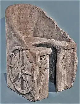 Les ruines de plusieurs palais ont été mises au jour ; le palais numéro III était particulièrement soigné, chaque appartement était équipé d'une salle de bains avec une cuve-baignoire et des canalisations d'évacuation en poterie. La proximité avec la cuisine avait pour but de fournir de l'eau chaude et froide[29]. Les hommes qui fabriquaient les tuyauteries - probablement des potiers - ainsi que les hommes qui les préparaient et les mettaient en place, le faisaient avec un professionnalisme qui se rapprochait beaucoup de celui des plombiers, qui dans les millénaires futurs vont travailler le plomb pour réaliser les conduites de distribution de l'eau dans l'Empire romain.