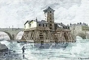 - Pierre Louis Viollet, « L'Hydraulique dans les civilisations anciennes », « Histoire de l'énergie hydraulique, moulin, pompes, etc ». Fulgence Girard, « La pompe du pont Notre-Dame », Le Monde illustré, no 10, p. 11, du 20 juin 1857. L'Histoire en Ligne. « Les ponts de Paris, le Pont Notre Dame ».