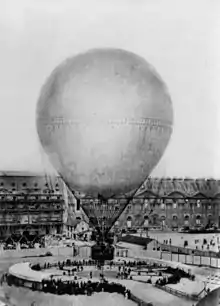 « Le gonflement des aérostats se fait ordinairement par l'hydrogène carboné, ou gaz d'éclairage, dont la densité moyenne est la moitié de celle de l'air. Quoique beaucoup plus lourd que l'hydrogène pur, il est d'un usage beaucoup plus facile, puisqu'au lieu de le fabriquer à grands frais spécialement pour une ascension, il suffit de le faire arriver d'une usine ou d'un tuyau de conduite. Lorsqu'une ascension doit être exécutée dans un établissement scientifique, on peut facilement amener le gaz d'éclairage des tuyaux les plus voisins, et se borner à prendre exactement la quantité de gaz égale à la capacité de l'aérostat[3]. »