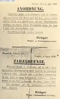 En , au début de l'opération Barbarossa, les troupes allemandes entrent dans la ville. La ville en plus de sa population juive locale, compte environ 1 000 Juifs réfugiés de Jedwabne, Miastkowo and Śniadówo. Vers la mi-, les Allemands établissent un Judenrat présidé par Mendel Moszyński avec Mendel Koliński comme adjoint. Le conseil est formé de 24 membres, parmi lesquels: le Dr Hefner, Jankiel Gałczyński, l'ingénieur Mojżesz Rozenthal et Tabulicki. En plus du Judenrat, les Allemands établissent une police juive composée de 25 membres avec à sa tête Salomon Herbst. En , un ghetto est créé comprenant la totalité de la rue Senatorska jusqu'au Zielony Targ (marché alimentaire) et le quartier Rybaki du côté de la rue Zielona.