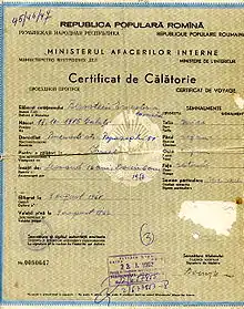Cartes d'identité spéciales émises pour les Juifs et signées demain de Radu Lecca (1943).