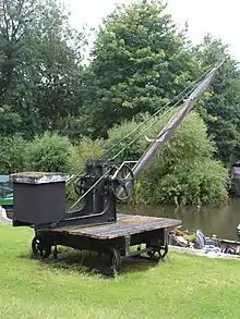 ![]() Grue manuelle du XIXe siècle ou au début du XXe siècle, avec une capacité de 500 kg au quai Dapdune sur la navigation Wey, Guildford, Angleterre. Notez que la grue sur un chemin de fer a couru le long du quai. |