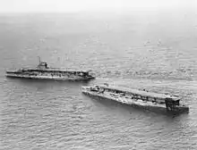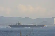 Mais ces grands porte-avions n'ont pas la faveur de l'opinion publique, qui les trouve trop coûteux[Note 8]. Entre deux porte-avions dont le déplacement est dans un rapport de 2 à 1, on considère que la longueur de coque du plus petit est 80 %, et la surface de plate-forme de l'ordre des 2/3 de celle du plus lourd. Cette considération et le fait que le traité de Washington de 1922 ne prévoyait pas de limitation en nombre ou en tonnage maximal pour les porte-avions de moins de 10 000 tonnes ont conduit la Marine impériale japonaise à ne pas mettre en service après 1927 de porte-avions plus lourd que le Ryūjō de 8 000 tonnes[19] en 1933. En 1927, dans le même esprit, le General Board de la Marine des États-Unis établit un programme de construction de cinq ans pour cinq porte-avions (CV-4) d'un déplacement de 13 500 tonnes, soit la moitié du déplacement maximal fixé par le Traité naval de Washington.