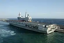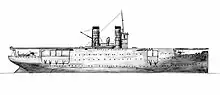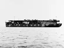 Enfin, le premier porte-avions britannique construit en tant que tel, le HMS Hermes de 11 000 tonnes environ, lancé en , était encore en travaux au moment de la conférence de Washington[11]. Ces deux bâtiments avaient une caractéristique nouvelle, un îlot à tribord incorporant la passerelle et les conduits de fumée des chaudières.
