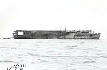 La Marine impériale japonaise avait, avec l'aide des Britanniques, mis en service le , donc avant la fin de la conférence de Washington, un porte-avions de 10 500 tonnes, le Hōshō. Long de 165 mètres et large de 22,70 mètres[14], il était doté d'un îlot décalé sur tribord (supprimé deux ans plus tard) et de trois cheminées rétractables. Aussitôt le traité signé, et dans le but de bénéficier de toutes les stipulations qui lui étaient favorables, le Japon entreprit de convertir deux croiseurs de bataille inachevés en porte-avions de 33 000 tonnes. Les travaux ont commencé sur les coques des Akagi et Amagi, mais à la suite des dégâts subis par l'Amagi, lors du séisme de Kantō en 1923, on le remplaça par le cuirassé Kaga. Dans leur première version, les grands porte-avions japonais présentaient deux ponts d'envol avec une plate-forme de décollage à partir du hangar, dans le même esprit que le HMS Furious[15].