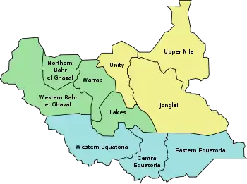 En 1947, les britanniques tentent de rattacher le Soudan du Sud à l'Ouganda mais ces tentatives sont anéanties par la Conférence de Djouba, qui scelle pour 64 ans l'appartenance du Soudan du Sud au Soudan, d'abord anglo-égyptien puis indépendant à partir de 1956. Mais des dissensions entre le nord du Soudan, à majorité musulmane, et le sud à majorité chrétienne et animiste, sont apparues dès le lendemain de l'indépendance du Soudan anglo-égyptien, car le gouvernement de Khartoum revient sur les promesses d'autonomie au sein d'un État fédéral qu'il a faites aux populations de la région. Une mutinerie d'officiers sudistes déclenche la première guerre civile soudanaise qui dure 17 ans, de 1955 à 1972. Ce premier conflit prend fin à la suite des accords signés à Addis-Abeba en Éthiopie, qui accorde finalement au Soudan du Sud un certain degré d'autonomie.