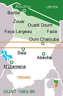 Après l'échec d'un projet de fusion entre le Tchad et la Libye en 1981, les troupes libyennes se retirèrent dans le cadre d'un accord conclu avec le gouvernement français. En 1982, Goukouni Oueddei fut renversé à son tour par Hissène Habré, qui dut faire appel l'année suivante aux troupes françaises pour contenir une nouvelle invasion libyenne. En 1987, une contre-offensive des forces tchadiennes contraignit finalement les troupes libyennes à évacuer le pays, à l'exception de la bande d'Aozou, qui ne fut restituée au Tchad qu'en 1994.