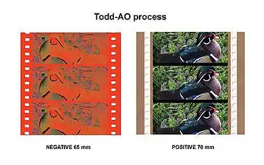 Mais un problème tracasse l'équipe de chercheurs : un manque de définition du film 19 mm au visionnement, surtout dans les plans larges (personnages en pied) qui sont la règle à l'époque, en imitation à la photographie. Edison et Dickson décident d'augmenter la largeur du ruban, passant de 19 à 35 mm (la moitié exacte du ruban Eastman). Cette fois, ils choisissent de faire défiler le ruban à la verticale et le dotent de 4 perforations rectangulaires sur un seul des côtés pour profiter pleinement de la surface sensible. Les essais font apparaître des risques de déchirure et un manque de stabilité déjà constatée avec le format précédent. En ajoutant une seconde rangée de 4 perforations sur l'autre bord de la pellicule, « Edison fit accomplir au cinéma une étape décisive, en créant le film moderne de 35 mm, à quatre paires de perforations par image »[65], le format standard qui existe encore aujourd'hui dans le domaine du cinéma argentique, sous une forme qui a peu évolué[66].