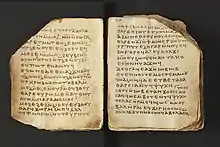 Le plus ancien texte du Nouveau Testament retrouvé à ce jour est le papyrus P52 découvert sur le site archéologique d'Oxyrhynque en Égypte, contenant un fragment de l’Évangile selon Jean, qui date de la première moitié du IIe siècle. Parmi les nombreux papyrus d'Oxyrhynque, on trouve aussi des poèmes de Sappho, des comédies de Ménandre, des textes chrétiens canoniques (Papyrus Oxyrhynque 5101 : fragments des Psaumes)[9] ou non canoniques en particulier des fragments de l'Évangile selon Thomas[10] dont le texte complet a été trouvé à Nag Hammadi, etc. La bibliothèque de Nag Hammadi contient une douzaine de codex de papyrus, disponibles en français sous le titre Écrits gnostiques : la bibliothèque de Nag Hammadi (sous la direction de Jean-Pierre Mahé et de Paul-Hubert Poirier, Bibliothèque de la Pléiade, 2007).