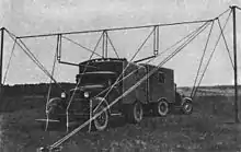 De son côté, au Laboratoire national de radioélectricité du Général Ferrié, Pierre David propose en 1928 de détecter les avions avec un faisceau d'ondes courtes et expérimente en 1934 un dispositif bistatique en onde continue comprenant un émetteur à =5 m et un récepteur distant de 5 km. Ces systèmes, que l'on appellera de manière générique Barrage David, sont utilisés par la Marine française pour équiper les abords des ports de Brest et de Toulon et acquis à trente exemplaires par l'Armée de l'Air pour protéger les frontières de la Suisse à la Mer du nord. Ils deviennent les premiers systèmes français opérationnels de détection électromagnétique[13]. Ces systèmes étaient capables de détecter le passage d’un avion (perturbation des signaux radio électriques) sans pourvoir donner l’altitude ni la position de l’appareil.