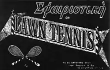 Entre 1859 et 1865, à Birmingham, en Angleterre, le major Harry Gem, un avocat, et son ami Augurio Perera, un marchand espagnol, combinent des éléments du jeu de raquettes et de la pelote basque puis jouent sur une pelouse de croquet à Edgbaston[27]. En 1872, les deux hommes déménagent à Leamington Spa et en 1874, avec deux médecins de l'hôpital Warneford, fondent le premier club de tennis au monde, le Leamington Tennis Club[28]. En décembre 1873, le major Walter Clopton Wingfield conçoit un court de tennis en forme de sablier afin d'obtenir un brevet sur son court (car le court rectangulaire était déjà utilisé et n'était pas brevetable). Un brevet temporaire sur ce court en forme de sablier lui est accordé en février 1874, qu'il ne renouvelle pas lorsqu'il expire en 1877. Il est parfois pensé à tort que Wingfield a obtenu un brevet sur le jeu qu'il a conçu pour être joué sur ce type de terrain, mais en fait, Wingfield n'a jamais demandé ni reçu de brevet sur son jeu. Après une série d'articles et de lettres dans le magazine sportif britannique The Field, et une réunion au Marylebone Cricket Club de Londres, les règles officielles du tennis sur gazon sont promulguées par ce club en 1875. Celles-ci ne conservent aucunes des variations que Wingfield avait imaginées et nommées Sphaeristikè. Wingfield affirme qu'il avait inventé sa version du jeu pour amuser ses invités lors d'une garden-party le week-end sur son domaine de Nantclwyd, à Llanelidan, au Pays de Galles en 1874, mais des recherches ont démontré que son jeu n'avait probablement même pas été joué pendant ce week-end au Pays de Galles[29],[30]. Il a probablement insiré son jeu à la fois sur le sport en évolution du tennis en plein air et sur le jeu de paume. Une grande partie de la terminologie du tennis moderne dérive également de cette période, car Wingfield et d'autres ont emprunté à la fois le nom et une grande partie du vocabulaire français du jeu de paume et les ont appliqués à leurs variantes du vrai tennis[31]. Dans l'ouvrage scientifique Tennis: A Cultural History, Heiner Gillmeister révèle que le 8 décembre 1874, Wingfield avait écrit à Harry Gem, commentant qu'il expérimentait sa version du tennis sur gazon depuis un an et demi[32]. Gem lui-même avait largement attribué à Perera l'invention du jeu.