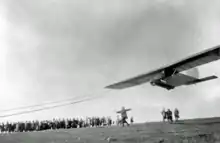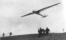 Le traité de Versailles interdisant toute forme de vol motorisé en Allemagne, de nombreux jeunes pilotes et concepteurs d'avions se sont tournés vers le vol à voile en tant que sport. Sous Oskar Ursinus (en)[14] et Theodore von Kármán, des amateurs et des groupes d'études universitaires sérieux ont commencé à construire des planeurs. Le premier concours a eu lieu en 1920 sur la Wasserkuppe. Parmi ceux qui se rassemblent sur la Wasserkuppe se trouvent des ingénieurs et des scientifiques ainsi que des amateurs et d'anciens pilotes de guerre désireux de trouver un moyen d'assouvir leur envie de voler. Certains des planeurs ont été modélisés d'après des avions à moteur, d'autres sont des hängegleiters des types Lilienthal et Chanute. Alors que de nombreux «vols» n'étaient que des trébuchements se terminant par un crash, Kármán et son équipe du RWTH Aachen avec leur planeur FVA-1 (de) Schwarzer Teufel (Diable noir)[15] sont les pionniers de la méthode de lancement à l'élastique et de vols réguliers de plus d'une minute suivis d'un atterrissage sans crash. L'événement a ensuite été répété chaque année avec une amélioration constante des planeurs et des résultats.