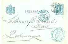 Ainsi Groningue était le chef lieu du département de l'Ems-Occidental et avait comme numéro de département 123. On trouve donc des lettres avec la marque 123 GRONINGUE[2] Voici une table (incomplète) des émissions de telles marques.