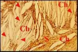 Il s'agit de spicules irréguliers d'os nécrobiotique trouvés dans des cholestéatomes récidivés. Ces esquilles sont incluses en plein stroma, à distance des osselets, mais peuvent cependant soulever l’épithélium malpighien sus-jacent. Elles peuvent y susciter une réaction fibro-inflammatoire parfois accompagnée de cellules géantes d’aspect ostéoclastique et, dans certains cas, une ossification métaplasique secondaire évocatrice de tympanosclérose sur le plan clinique uniquement.