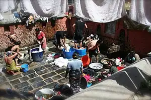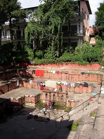 Les Népalais peuvent être vus en train de boire et de se laver ou de laver leur linge dans un hiti, ou de l'emporter chez eux pour se laver, boire et cuisiner.