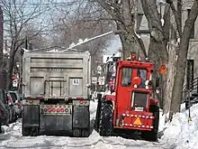 Les villes québécoises consacrent une partie importante de leurs budgets à l'entretien des routes en hiver, notamment pour le déneigement. Pour la seule ville de Québec, le budget annuel d'enlèvement de la neige au cours d'une saison comportant une accumulation moyenne de 320 cm est estimé à 60 millions de dollars soit près de 5 % de son budget[13]. Les opérations de déneigement des 2 550 km de rues et de 1 160 km de trottoirs requièrent la mobilisation de 1 250 véhicules – souffleuses, chasse-neige, niveleuses, camions-bennes, saleuses, chasse-neige de trottoirs, etc.[14].