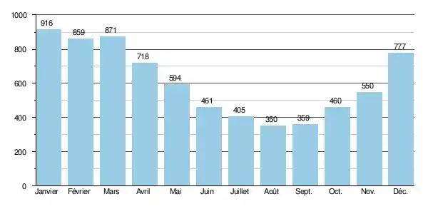 Le module de la rivière à la Mesnière est de 0,609 m3/s.