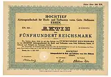 Après la Première Guerre mondiale, un homme d'affaires allemand, Hugo Stinnes, monta dans le capital de la société, finit par en devenir l'actionnaire majoritaire et l'intégra dans son empire, déjà présent dans le charbon, l'acier, la construction navale, et avec des participations dans la presse ou dans des banques. Le siège social de la société passa alors de Francfort-sur-le-Main à Essen, qui était à la fois le fief d'Hugo Stinnes et la région d'Allemagne où la construction était la plus active.