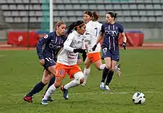 Deuxième meilleure buteuse de Division 1 derrière l'intouchable Marinette Pichon en 2005-2006, elle ne réussit pas la passe de trois titres consécutifs avec le Montpellier HSC après ses succès en 2004 et 2005[réf. nécessaire]. Elle évolue dans l'Hérault durant cinq saisons