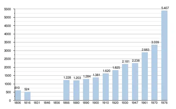 - Sources : INS, Rem. : 1806 jusqu'en 1970 = recensements, 1976 = nombre d'habitants au 31 décembre[2].