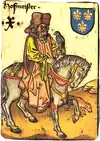 | VII | ![]() Kamermeister (chambellan) | ![]() Schenck (Porteur de coupe) | ![]() Truchses (Steward) | ![]() Kuchenmeister (Maître de cuisine) |