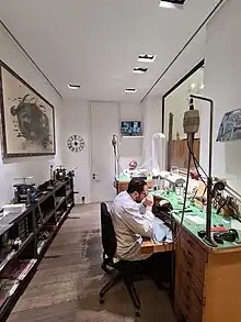 Nouveauté pour l’époque, Jean Holemans décide de sortir ses artisans de l’ombre et de les faire œuvrer ‘à vue’ dans sa boutique, située à Bruxelles, chaussée de Charleroi, afin de montrer au public une partie des coulisses du travail de joaillier[8].