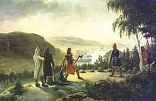 Egill Skallagrímsson s'engageant dans le holmgang avec Berg-Önundr, peinture de Johannes Flintoe, XIXe siècle.
