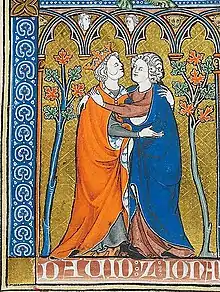 Néanmoins les textes bibliques évoquent aussi la tendre amitié qui unit le deuxième roi d'Israël David à Jonathan (en hébreu: יְהוֹנָתָן / יוֹנָתָן "celui que Dieu a donné") fils de Saul : « Or il advint que l'âme de Jonathan se lia à l'âme de David et que Jonathan l'aima comme lui-même »[8]. Après la mort de ce dernier au combat, David se plaint : « Je suis en détresse à cause de toi, mon frère Jonathan, tu m'étais très cher, ton amour était pour moi plus merveilleux que l'amour des femmes »[9]. Les pratiques homosexuelles semblent bien avoir existé comme le rapporte l'historien Juif Flavius Josèphe en parlant des religieux Zélotes (en grec : ζηλωτής zelotes ; Qiniim en hébreu) révolutionnaires lors de la résistance désespérée de Jérusalem assiégée par les Romains[10].