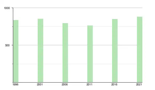 Le recensement de 2016 y dénombre 849 habitants, soit 6,9 % de plus qu'en 2006[6].