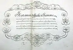 - Les Fidèles tableaux de l'art d'écrire par colonnes de démonstrations... Dédié à Monseigneur de Maupeou... Paris : J. Fr. Chereau, [ca. 1767-1768]. 2°, 31 pl. gr. par Baisiez (Paris BNF, Paris BHVP, Cambridge (MA) HUL). Cat. Jammes no 67. Avec le portrait de l'auteur gravé par Romanet d'après Forville Voir.