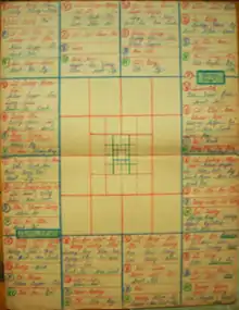 Un niveau plus élevé du Tử Vi est le Hà Lạc ou le Hà Lạc Bát Tự qui est une méthode de divination basée sur les mouvements des 64 Koua du Bagua, l'influence du yin - yang, le changement des cinq éléments, combinés avec les données principales du Tử Vi (l'heure, date du calendrier lunaire...). Ci-dessous, ce sont les deux plans chiffrés et colorés pour les études de Hà Lạc[19]: