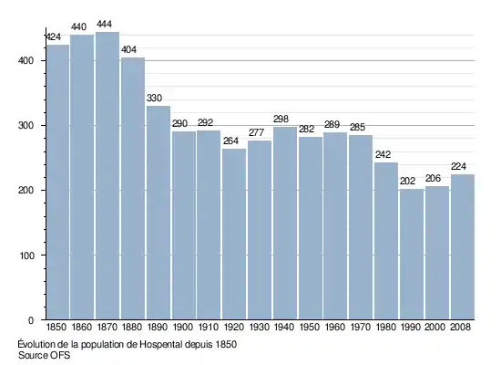 Le graphique suivant résume l'évolution de la population de Hospental entre 1850 et 2008[3] :